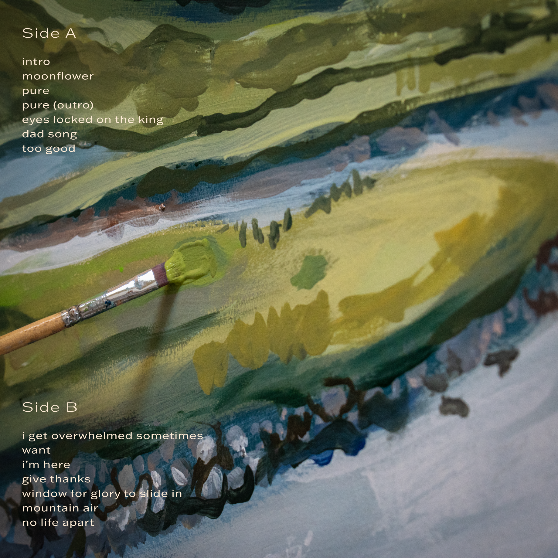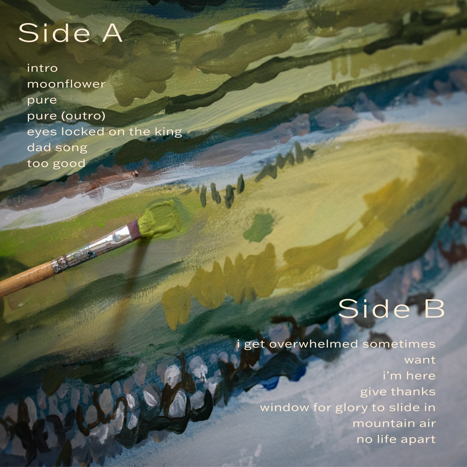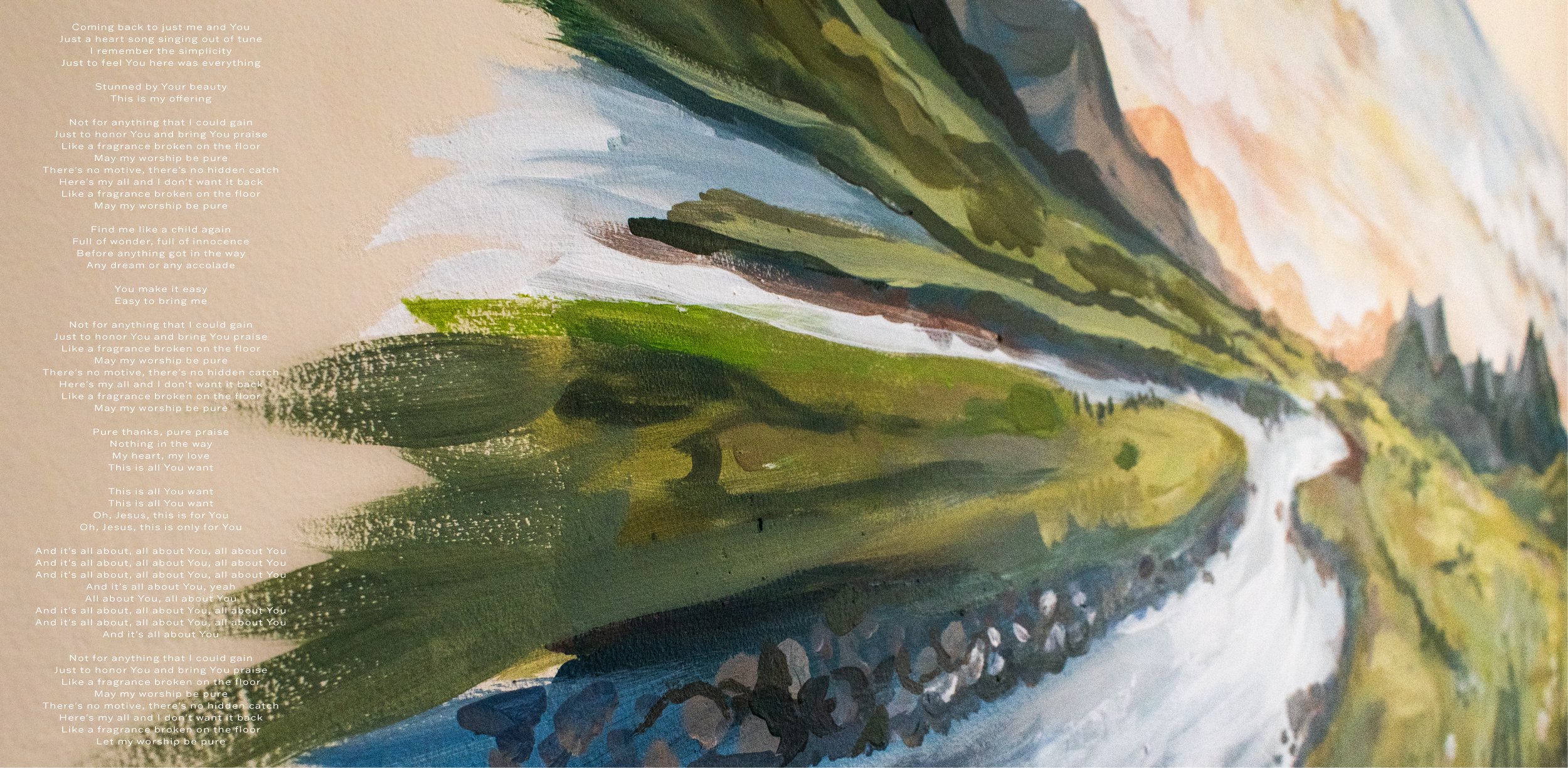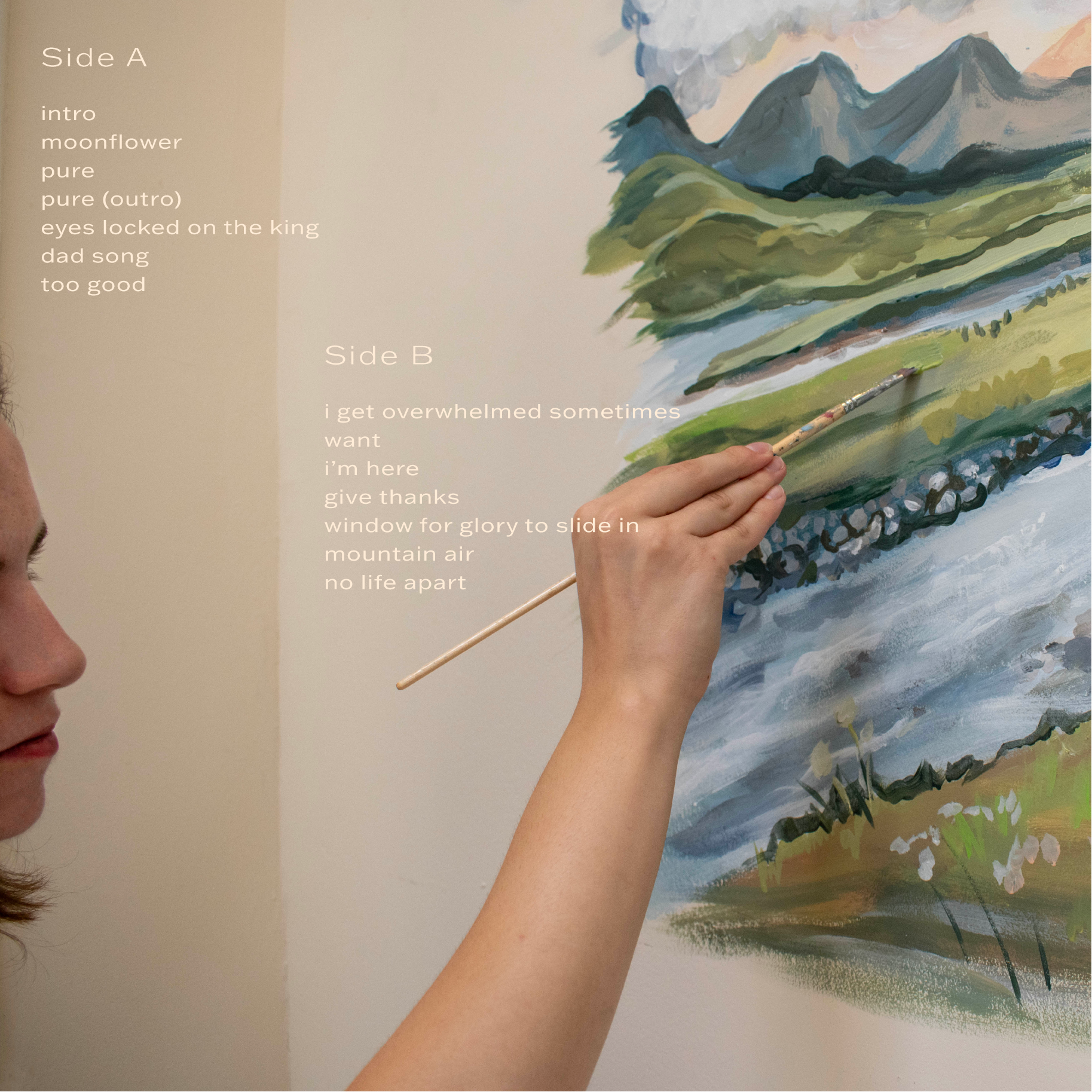 This project involved redesigning an album of our choosing in such a way that reflects the sound of the music and the feelings that it evokes. The album that I chose is called Pure by Abbie Gamboa, and it is an album full of soft worship songs. I wanted to capture the serenity of the album as well as the nods to nature through an impressionist-style landscape mural.