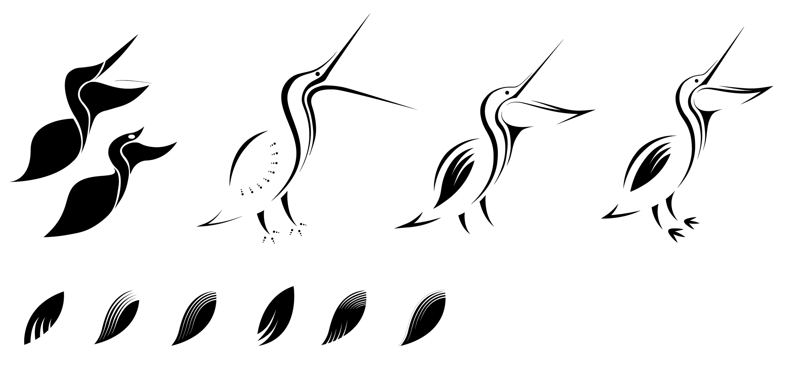 As I started to translate my ideas into Adobe Illustrator, I slowly progressed from representing the pelican with literal, solid shapes to implied strokes. My professor challenged me to remove unnecessary elements that the viewer can imply on their own.